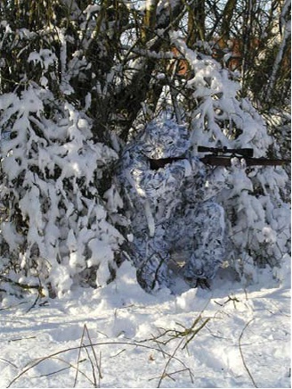 V prevedení BROWN (hnedá do lesa) / GREEN (zelená do trávy) / SNOW (zimná-biela)Komplety tvoria 3 časti, ktoré sa obliekajú na oblečenie: vrchný diel, nohavice, maska.