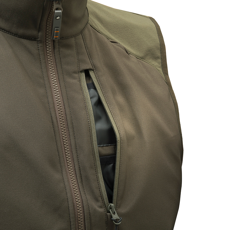 Odolná voči vetru, vode a priedušná vďaka membráne BWR – Beretta Wind Resistant - spájaná vnútorným mäkkým mikroflísom. Vonkajší materiál je ošetrený úpravou DWR - „Durable Water Repellent“. Vestu je možné kombinovať s nohavicami 4 Way Stretch EVO, 4 Way Stretch Pro alebo Bymark.