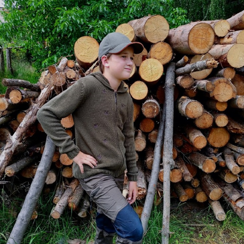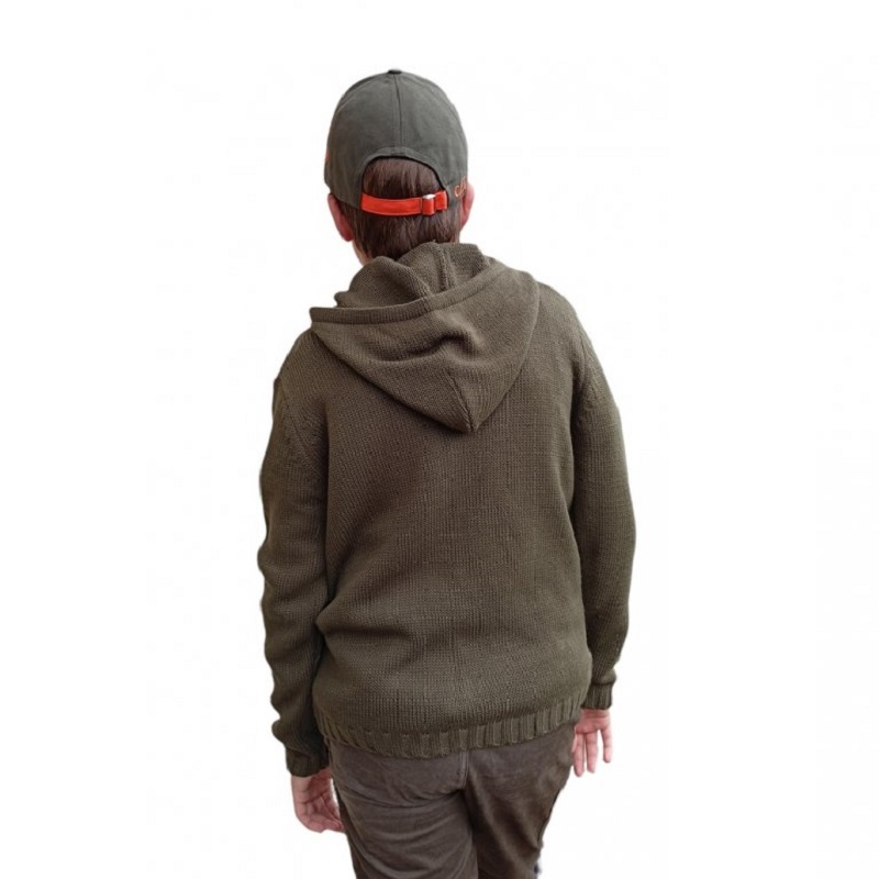 Detský jemný a mäkký sveter s kapucňou zo 100% akrylu so zapínaním na zips as výšivkou s motívom jeleňa. Sveter sa dá klasicky prať na 30 stupňov.