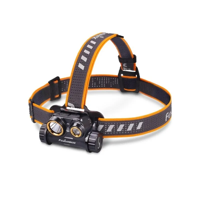 Nabíjteľná čelovka Fenix HM65R sa vyznačuje konštrukciou z ľahkej magnéziovej zliatiny, vysokou odolnosťou proti vode i pádu, unikátnou konštrukciou s dvoma reflektormi a celkovým výkonom až 1400 lúmenov. Jeden reflektor vytvára dobre zaostrený svetelný lúč s dosvitom až 163 metrov a druhý reflektor má svetelnú stopu veľmi širokú a plynulú. Svetelný tok diaľkového reflektora je až 1000 lúmenov, reflektor so širokým kužeľom ponúka maximálny výkon 400 lúmenov a neutrálny odtieň svetla. Ovládanie oboch LED je na sebe nezávislé, svetlo z oboch reflektorov možno ľubovoľne kombinovať a dosiahnuť tak svetelný tok až 1400 lúmenov. Diaľkový reflektor ponúka štyri stupne svietenia a široký reflektor tri. Na napájanie používa jeden Li-ion akumulátor typu 18650 s kapacitou 3400 mAh, ktorý je súčasťou balenia a nabíja sa cez moderný USB-C konektor priamo v čelovke. V prípade núdze je možné čelovku napájať dvoma jednorazovými batériami CR123A.