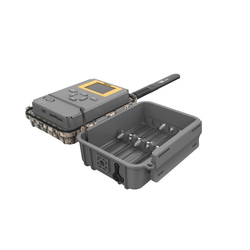 Výdrž batérie je až 4 mesiace vďaka 12 štandardným batériám AA. Zariadenie je možné napojiť aj k externému napájaciemu zdroju. Pre bez údržbovú prevádzku je fotopasca prispôsobená stupňom ochrany IP66 a zvláda prevádzku v teplotách od -20 až do +60°C. Fotopascu je možné pripevniť pomocou upínacieho popruhu alebo využiť závitu na statív. Na zariadenie poskytujeme 2-ročnú záruku.