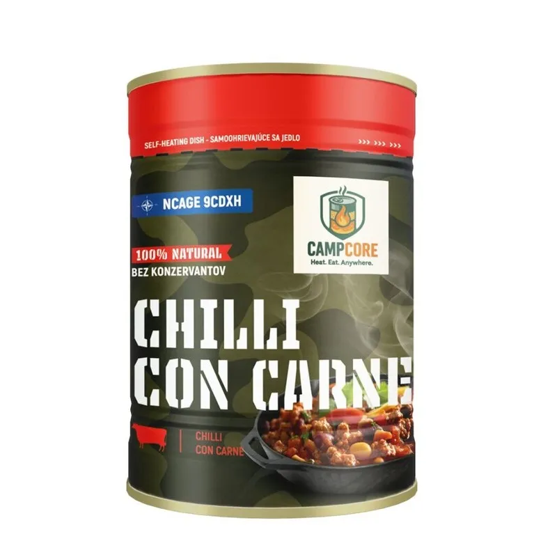 Chilli con carne CampCore je vhodné na cesty, do auta, do batohu aj do šuplíka v dielni. Dlhá trvanlivosť znamená, že máte istotu kvalitného a chutného jedla, kedykoľvek príde čas doplniť energiu. Ideálna voľba pre tých, ktorí nechcú strácať čas varením, ale napriek tomu chcú jesť poriadne.