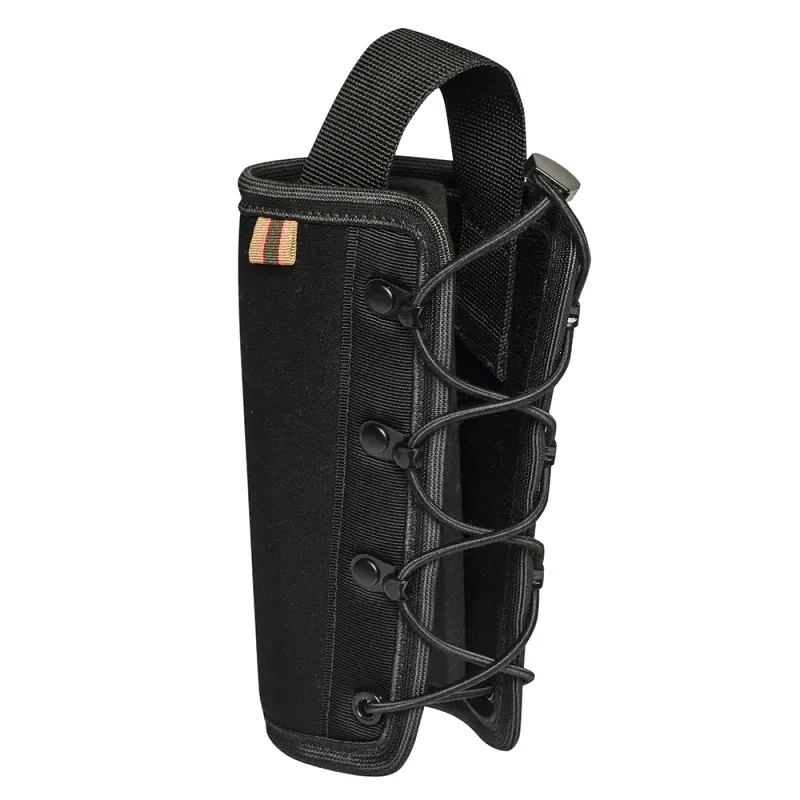 Systém upevnenia na pažbu s elastickou šnúrkou a kovovými háčikmi. Nastavenie výšky pomocou 3 rôznych dištančných vložiek. Zadné nastavenie pre rôzne veľkosti pažieb.