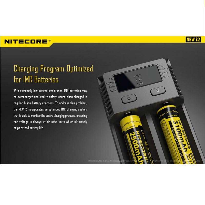 Intellicharge i2 je univerzálna inteligentná nabíjačka, kompatibilná s takmer všetkými typmi akumulátorov, čím sa vyhnete potrebe vlastniť viacero nabíjačiek. Nabíjačka i2 dokáže automaticky rozpoznať Li-ion,Ni-MH a Ni-Cd nabíjacie batérie a aplikovať tak vhodný režim nabíjania. Každý mikroprocesorom riadený nabíjací slot je schopný sledovať a nabíjať batériu samostatne. Nabíjanie je jednoduché, stačí vložiť batériu, nabíjačka vykoná detekciu a nabíjanie je automatické.