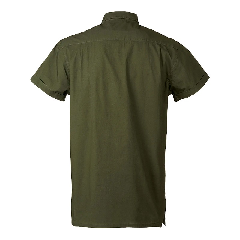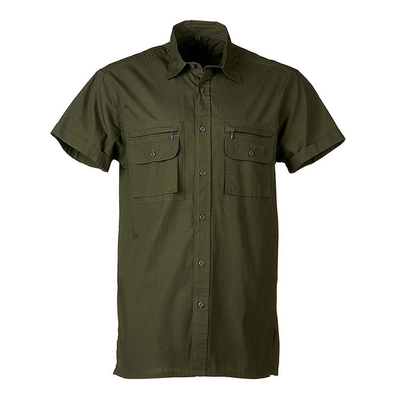 Košeľa s krátkym rukávom z ľahkého bavlneného popelínu s dvojitým náprsným vreckom na zips a dvojitým mechovým vreckom.