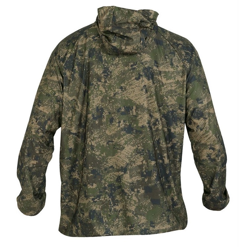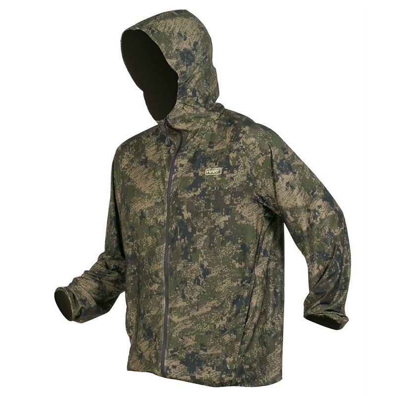 Camo krycia bunda vyrobená z ľahkej strečovej tkaniny s úpravou proti hmyzu Tanatex® (kliešte, komáre, muchy...). Ideálne na použitie pri prenasledovaní v teplom počasí alebo na prezliekanie cez bežné oblečenie pri jesennom alebo zimnom love.